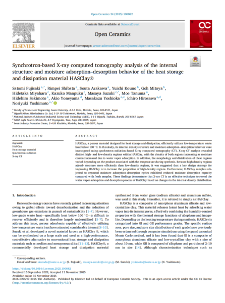 2025/11/14(金)に、藤崎 聡美さん(D2)がOpen Ceramicsに投稿していた『ハスクレイX線CT測定』についての論文が採択され、本日2025/11/17(月)正式に掲載されました。